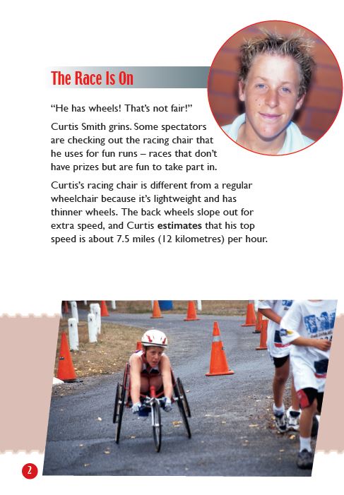 Curtis Smith can reach speeds of around 15.5 miles (25 kilometres) per hour in his bike chair. When it comes to sports, some kids think that Curtis has an unfair advantage, but he knows that competing in a wheelchair involves pain, hard work, and determination.